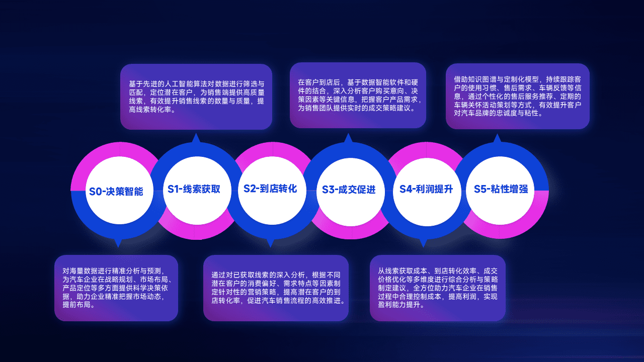 通过拓宽潜在客户来源、、优化线索分配并提高到店转化率,,,以增强销售效率。。。。同时,,,,利用线索数据不断优化分析模型,,有效提升转化率,,,,扩大营销影响力。。。